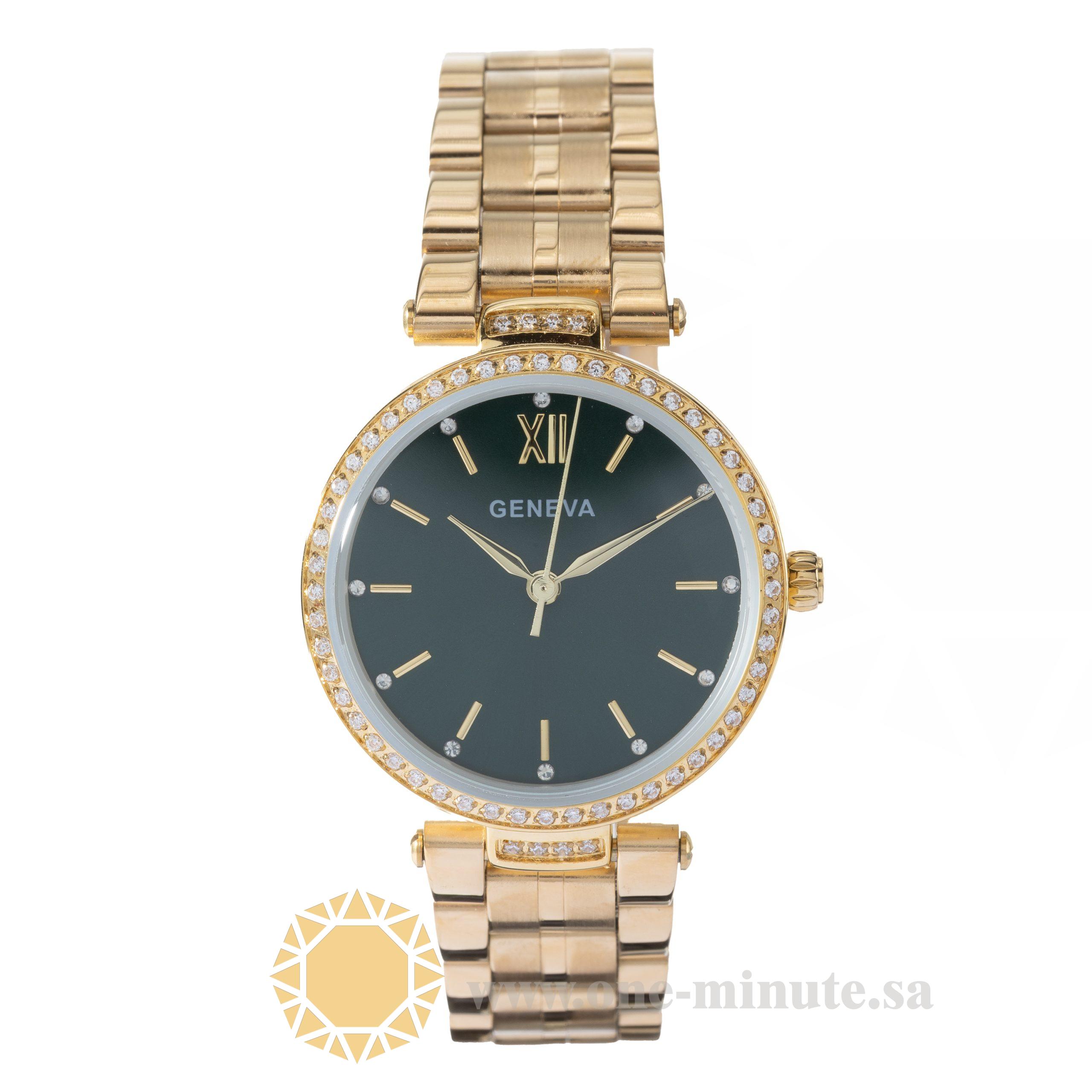 ساعة نسائية جينيفا صنقل بلون ذهبي بمينا اخضر